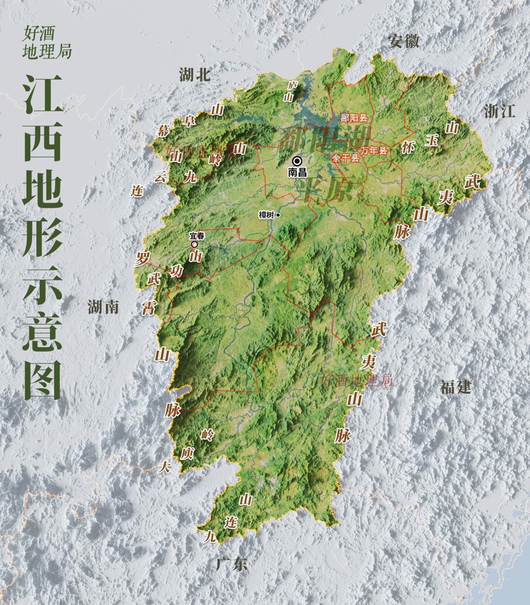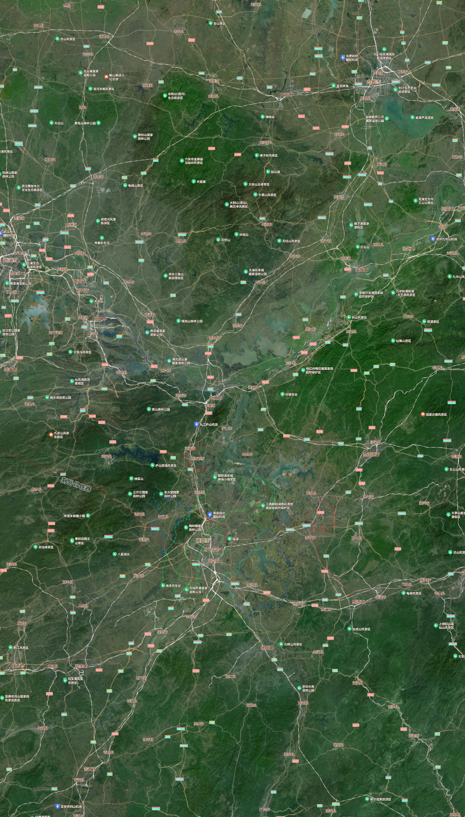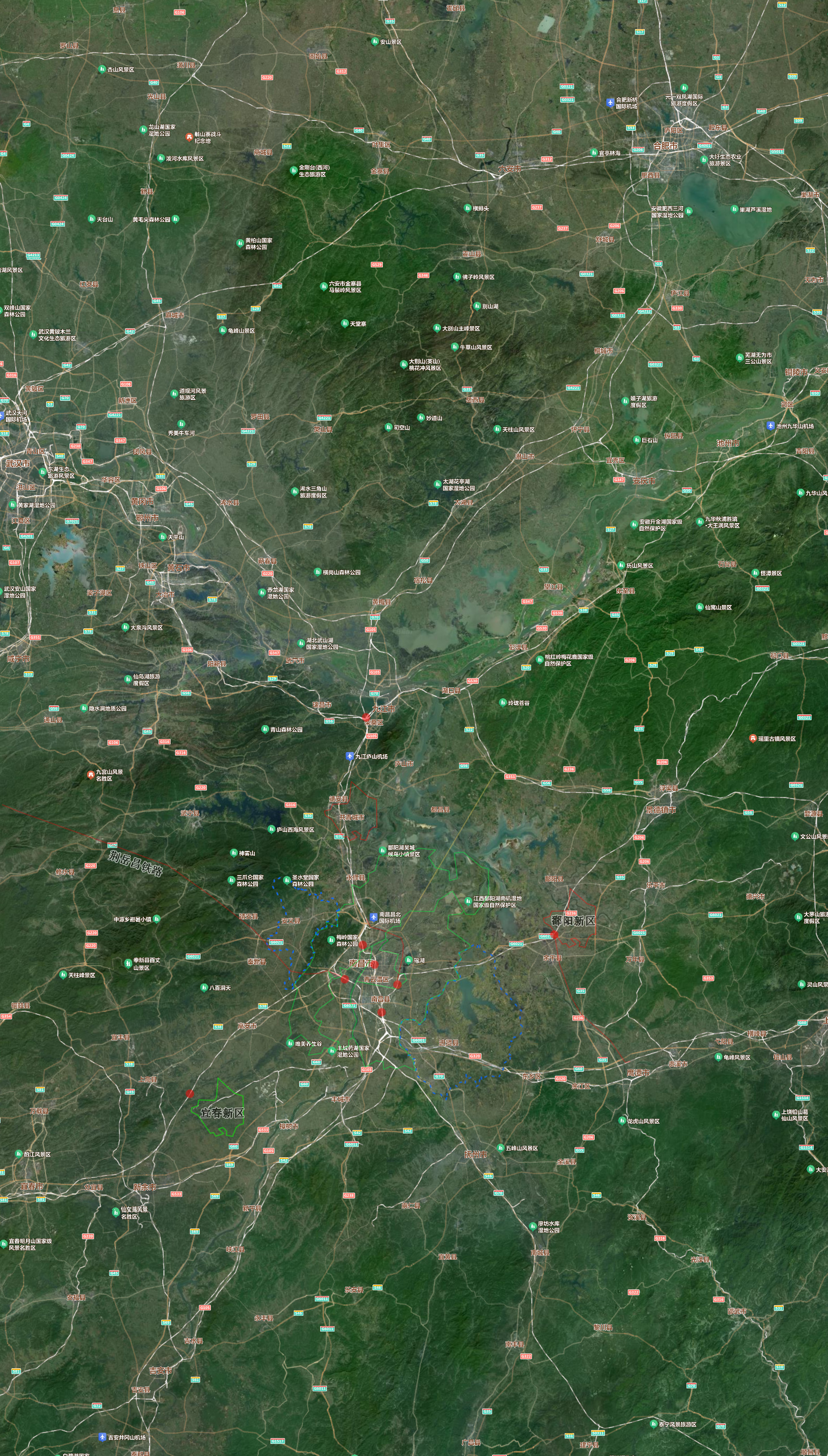 区划入南昌市(之前1958年南昌县并入南昌城,1961年新建县并入南昌市,2019年从新建区划出红谷滩区),最终市域面积从约 1,500平方公里 增至 当前的7,194平方公里;九江、宜春、吉安、抚州及景德镇和鹰潭动不了,九江是仅次于赣州的第三城,而且南昌-九江城际